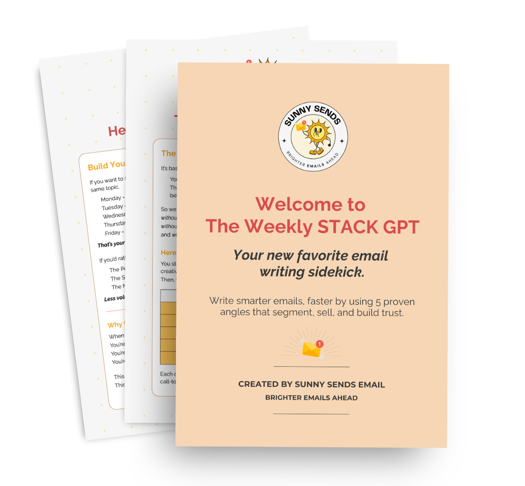 You don’t have time not to. More emails = more data, better segmentation, and more sales. The Weekly STACK GPT cuts your writing time in half so staying consistent stops feeling impossible.